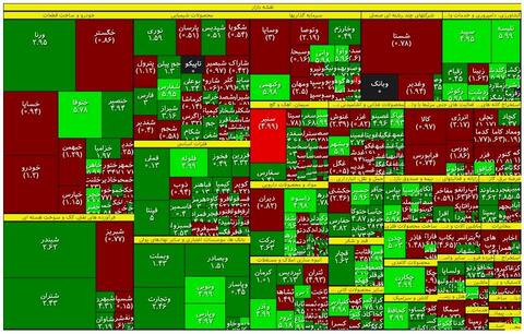 امروز نمادهای فارس، شبندر، شتران، وپارس، وبملت و نوری بیشترین اثر را در رشد شاخص کل بورس دارند. همچنین گروه بانکها و مؤسسات اعتبارای سبزترین گروه بازار سهام است.