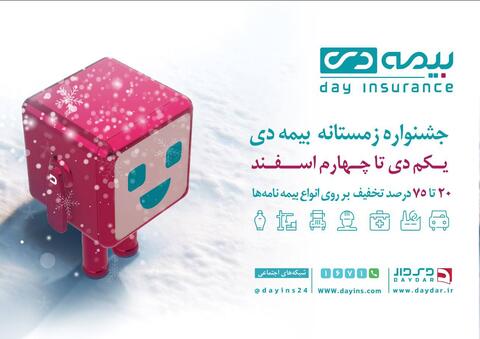 به گزارش روابط عمومی بیمه دی فروش ویژه زمستان بیمه دی همزمان با شروع زمستان آغاز شده است و تا ۴ اسفند ماه سالروز تاسیس بیمه دی دارد. این جشنواره تخفیفات شگفت انگیز بیمه ای را در بیمه بدنه خودرو، بیمه های مهندسی، آتش سوزی، مستمری و باربری صادراتی و وارداتی شامل می شود.