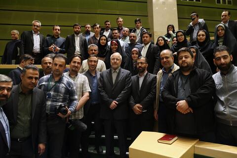 رئیس مجلس شورای اسلامی ضمن تبریک سال جدید و انجام گفتگویی کوتاه با خبرنگاران، با آنها عکس یادگاری گرفت.