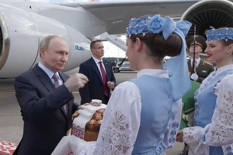 الکساندر لوکاشنکو رئیس جمهور بلاروس از پوتین استقبال کرد.