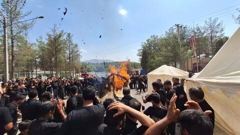 آتش، آرام و بیصدا بالا گرفت... صدای سوختن پارچهها میان سکوت سنگین عصر عاشورا، دلها را به تپش انداخت. خیمههایی که آتش گرفتند، تنها نمادی از خیمههای سال ۶۱ هجری نبودند؛ این شعلهها، شعلههای دل بودند. دلهایی که قرنهاست از سوز کربلا آرام نگرفتهاند.