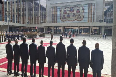 در مراسم استقبال رسمی از مسعود پزشکیان، پس از نواخته شدن سرود ملی ۲ کشور و سان دیدن از یگان تشریفات، رؤسای جمهور، اعضای هیئتهای عالیرتبه همراه را به یکدیگر معرفی کردند.