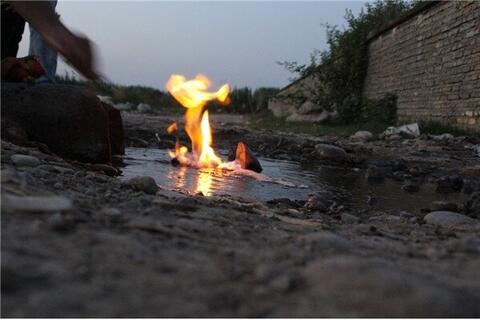 مهران حسنی در این باره میگوید: «چشمه آب و آتش در کنار یک مدرسه قرار دارد و تاسیساتی در اطراف این چشمه وجود ندارد. در گذشته یک چاه عمیقی در این منطقه حفاری شد و گازی به نام متان از آن بیرون آمد. آبی که از زمین خارج میشود، وقتی آتش روشن کنید، آب شعلهور میشود. آب این چشمه به رودخانه تجن هدایت میشود.»