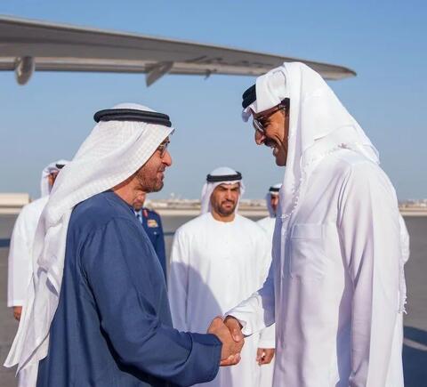 به گزارش مشرق به نقل از خبرگزاری رسمی امارات(وام)، شیخ تمیم بن حمد آل ثانی، امیر قطر در بدو ورود بن زاید به این کشور در فرودگاه بین المللی دوحه از وی استقبال کرد.