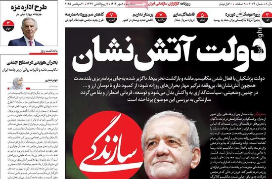 روزنامه سازندگی دیگر روزنامه اصلاحطلب نیز با سرگردان خواندن پزشکیان میان تحریمها و وعدههای روی هوای رئیسجمهور نوشته است.
