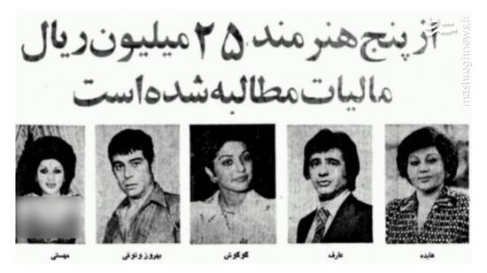 در ادامه این گزارش نوشته شده: «از هایده ۷ میلیون، مهستی ۵ میلیون، بهروز وثوقی ۳ میلیون، عارف ۴ میلیون و از گوگوش بابت سال ۲۵۳۵ (یعنی ۱۳۵۵) حدود ۶ میلیون ریال مالیات مطالبه شده است».