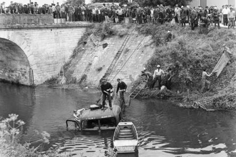 در روز حادثه (یازدهم جولای) یک راننده کامیون این پیچ را خوب دور نزد و با تمام سرعت وارد پیچ شد که این موضوع باعث واژگونیاش شد و ۴۰ نفر از پل به درون رود افتادند. ۹ نفر در این حادثه جان خود را از دست دادند که سه کودک در میانشان بود. این اتفاق در ساعت ۱۳:۱۵ دقیقه رخ داد. یک ربع بعد از این حادثه دوچرخهسواران به این محل رسیدند و دقایقی در آنجا توقف کردند. این مدت زمان کافی بود تا به عمق فاجعه پی ببرند.