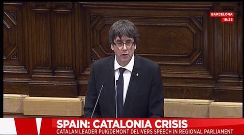رئیس منطقه خودمختار کاتالونیا علیرغم این از پارلمان خواست برای گفتوگو با مادرید، اعلام استقلال را معلق کند.