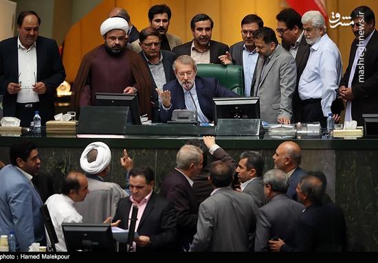 هیاهوی مخالفان استیضاح ربیعی در صحن/ بعد از تنفس لاریجانی، استیضاح مجددا آغاز شد/ فریادهای محجوب بر سر لاریجانی