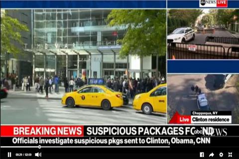 در همین رابطه، دفاتر شبکه سیانان در نیویورک به دلیل دریافت یک بسته مشکوک تخلیه شده اند.