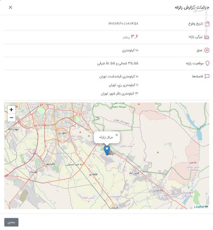 لحظاتی قبل در ساعت هفت و پنج دقیقه صبح امروز سه شنبه ۲۰ تیرماه استان تهران زمین در استان تهران لرزید.