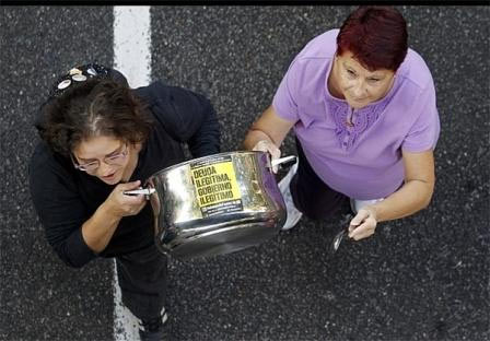 معترضان در اسپانیا با استفاده از ظروف آشپزخانه اعتراض خود را به سیاستهای اقتصادی نشان دادند.