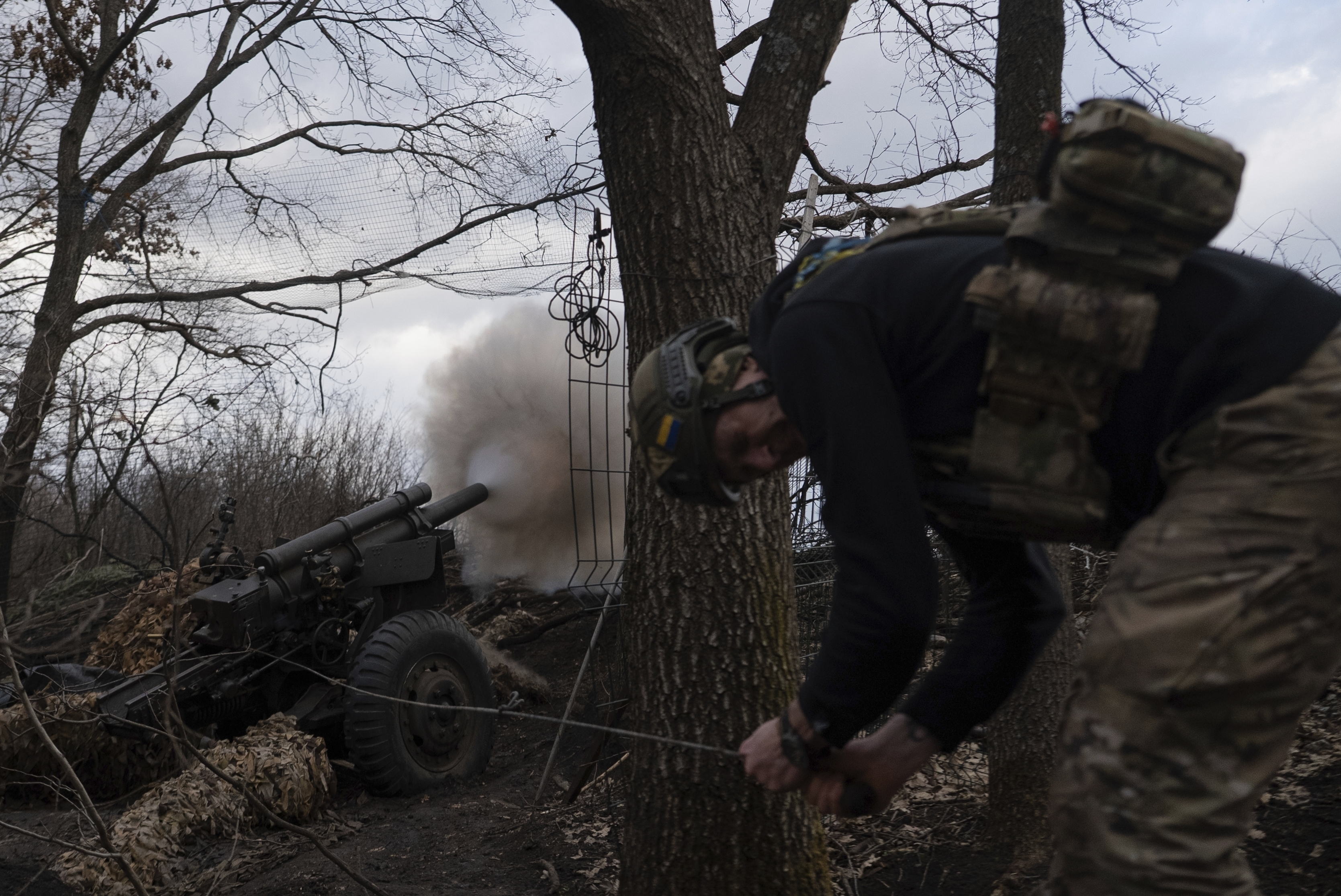یکی از اعضای تیپ «خارتیا» ی ارتش اوکراین، ۱۲ مارس ۲۰۲۵، با هویتزر ام۱۰۱ مواضع ارتش روسیه در منطقهی خارکیف اوکراین را هدف قرار میدهد. «دونالد ترامپ» بارها ادعا کرده که به دنبال توقف فوری جنگ اوکراین است، اما تا کنون در دستیابی به این هدف ناکام مانده است. راهبرد امنیت ملی دولت ترامپ تلویحاً اذعان دارد که یکی از دلایل جنگ اوکراین، تمایل اعضای ناتو به گسترش بیحد مرزهای این سازمان نظامی بوده. (+)