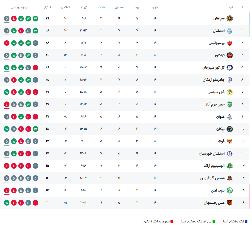 با تک امتیاز این بازی استقلال ۲۸ امتیازی و به دلیل تفاضل گل بهتر نسبت به پرسپولیس جای پرسپولیس را در رده دوم گرفت و تراکتور هم با ۲۶ امتیاز در مکان چهارم باقی ماند.