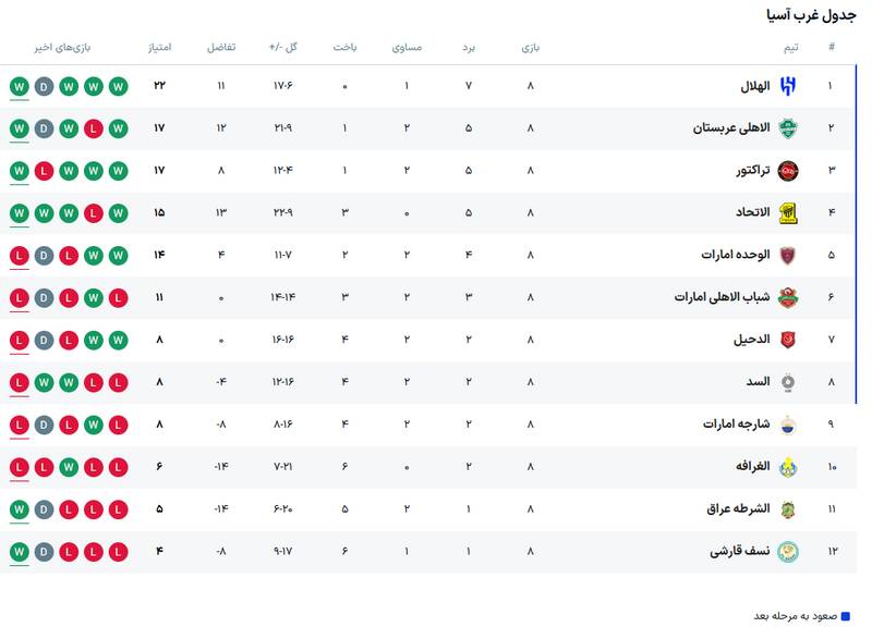 جدول منطقه غرب لیگ نخبگان آسیا در پایان مرحله گروهی:
