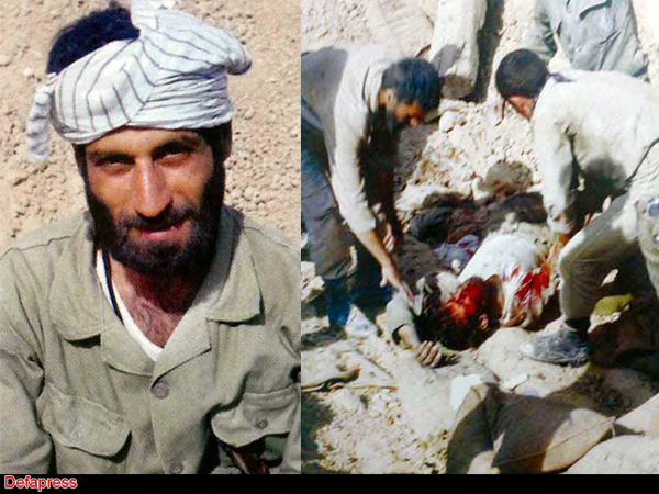 بیاختیار دوربینم را بالا آوردم و عکسی از او گرفتم. در حال حرکت بود و برای اینکه به زمین نیفتد از لبههای سنگرهای شنی کمک می گرفت. جلو رفتم، صدای زمزمهاش را میشنیدم، به آرامی گفت: "آقا اومدم. حسین جان اومدم." وقتی به او رسیدم دیگر رمقی برایش باقی نماده بود و به زمین افتاد.