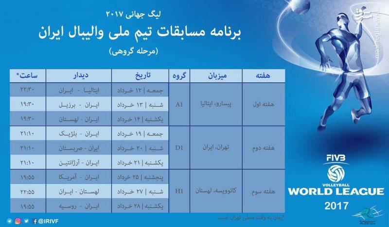 mshrgh.ir/732247 کد خبر 732247 تاریخ انتشار: ۱۱ خرداد ۱۳۹۶ - ۱۸:۲۳ ۰ نظر چاپ ورزش عکس/ برنامه مسابقات ایران در لیگ جهانی والیبال برنامه مسابقات ایران در لیگ جهانی 2017 برچسبها برنامه مسابقات لیگ جهانی والیبال