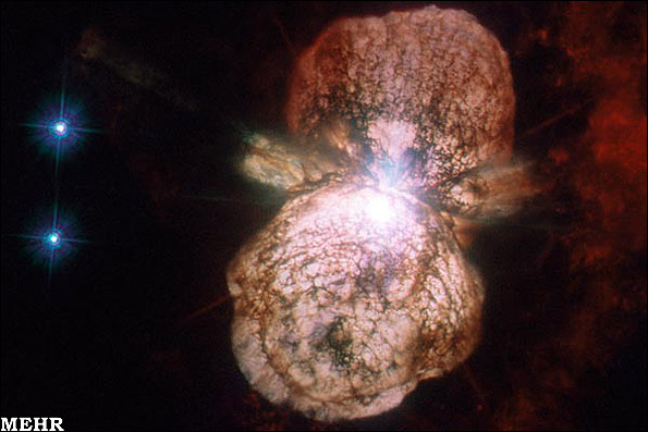تصویر جدیدی که هابل با "دوربین ACSHRC از "اتا- حمال" تهیه کرده است نشان می دهد که این ماده به روش متحدالشکلی از ستاره به بیرون پرتاب نمی شود بلکه به صورت یک شکل دمبلی فوران می کند.