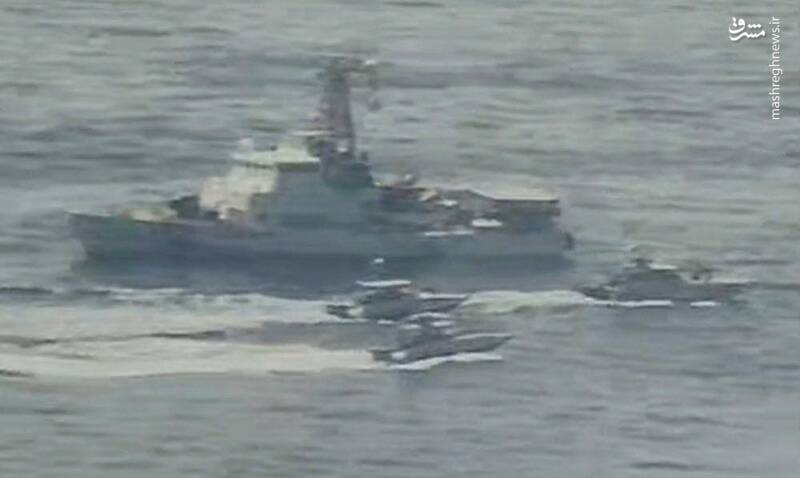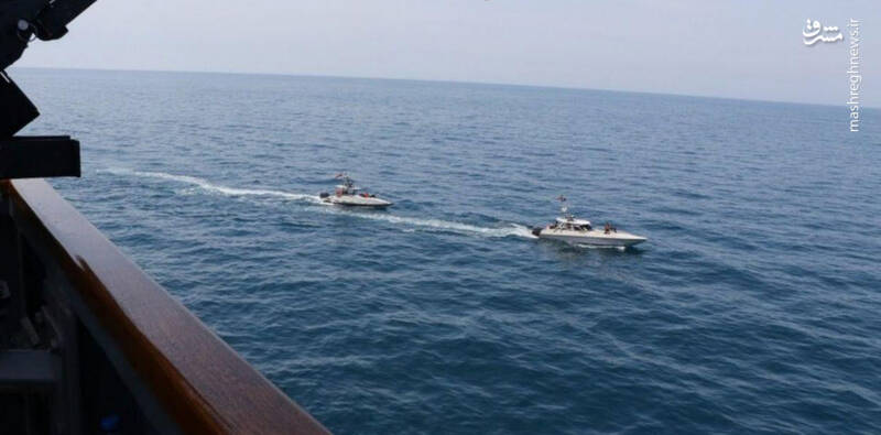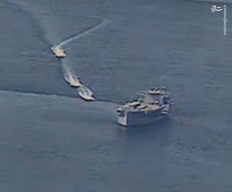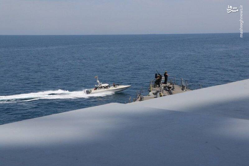 تصاویر منتشره توسط آمریکاییها نشان میدهد که قایقهای سپاه شناور آمریکایی را که در حال عبور از خلیج فارس است را احاطه کردهاند.