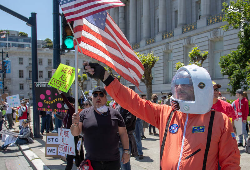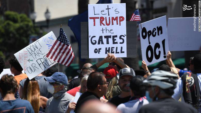 mshrgh.ir/1068203 کد خبر 1068203 تاریخ انتشار: ۱۳ اردیبهشت ۱۳۹۹ - ۱۴:۰۰ ۲ نظر چاپ عکس و فیلم عکس/ تظاهرات برای لغو قرنطینه در کالیفرنیا هزاران شهروند کالیفرنیایی در سرتاسر این ایالت دست به تظاهرات زده و لغو قوانین قرنطینه و بازگشایی کسبوکارها را خواستار شدند. اخبار مرتبط عکس/ پیاده روی شلوغ در روزهای کرونایی عکس/ اقدامات ناوگان هوایی برای مقابله با کرونا عکس/ تظاهرات روز کارگر با رعایت فاصله اجتماعی فیلم/ روایت راننده آمبولانس از بحران نیویورک ۲۰۰۰ آمریکایی در یک زندان به کرونا مبتلا شدند! عکس/ توزیع اقلام معیشتی جهت آسیب دیدگان ناشی از کرونا فیلم/ بحران غذا در ثروتمندترین شهر فرانسه فرق پزشکان کرونایی در ایران و آمریکا +عکس فیلم/ تناقض آمار تلفات کرونا در آمریکا فیلم/ هرج و مرج در دولت ترامپ فیلم/ واکنش مردم به طرح استفاده الزامی از ماسک عکس/ نخستین روز استفاده اجباری از ماسک فیلم/ رهایی طبیعت با پنهانشدن انسانها فیلم/ وضعیت ایران در آمار جهانی بهبودیافتگان کرونا فیلم/ آیا نوشیدن الکل بر بیماری کرونا اثر دارد؟ عکس/ تمرینات ورزشکاران المپیکی در قرنطینه عکس/ حرم بانوی کرامت در روزهای شیوع کرونا فیلم/ بازگشایی موزهها و بوستانها در پکن عکس/ آئین افتتاح سرای نوآوری دکتر غریب فیلم/ آیا صنعت هواپیمایی میتواند کمر راست کند؟ فیلم/ اعتراض مردم شیکاگو به محدودیتهای کرونایی برچسبها ایالت کالیفرنیا آمریکا ویروس کرونا قرنطینه