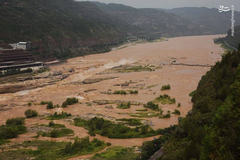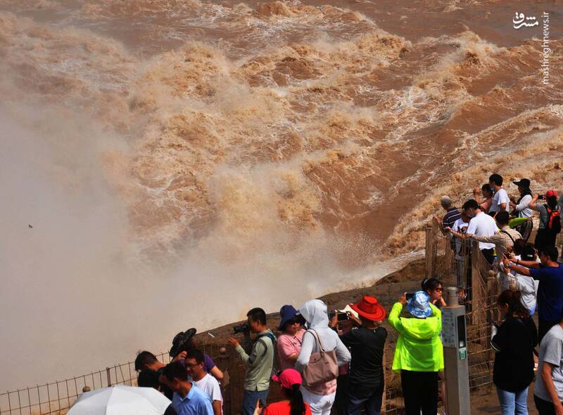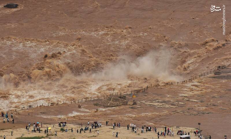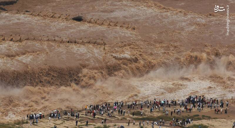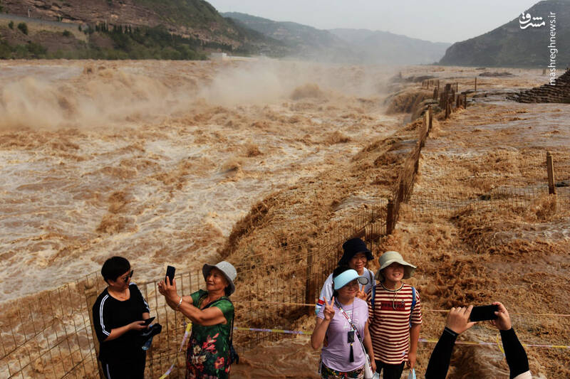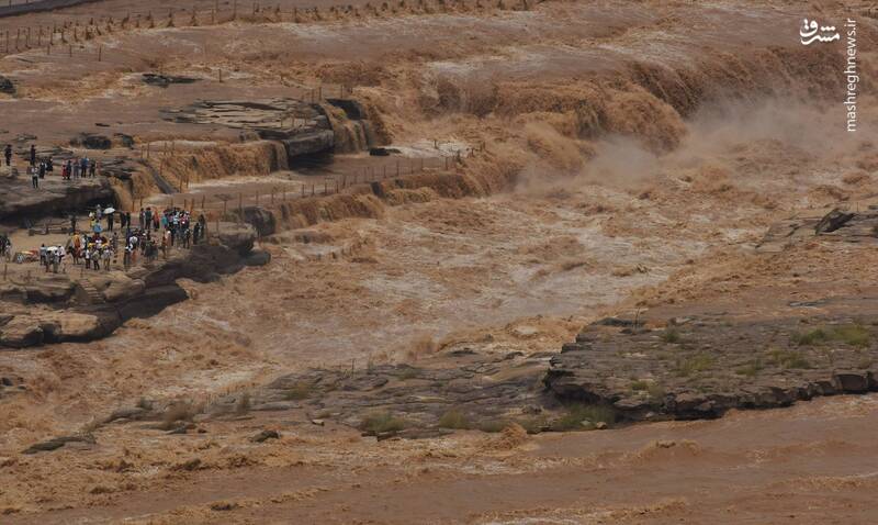 اقدام خطرناک تعدادی از چینی‌ها در کنار محل عبور سیلاب نزدیک آبشار زرد(هوکو) چین را مشاهده می‌کنید.
