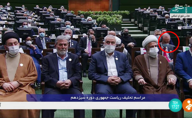 انریک مورا، معاون دبیرکل اتحادیه اروپا در مراسم تحلیف حجت الاسلام و المسلمین رئیسی را مشاهده میکنید که پشت سر نمایندگان محور مقاومت قرار گرفته است.