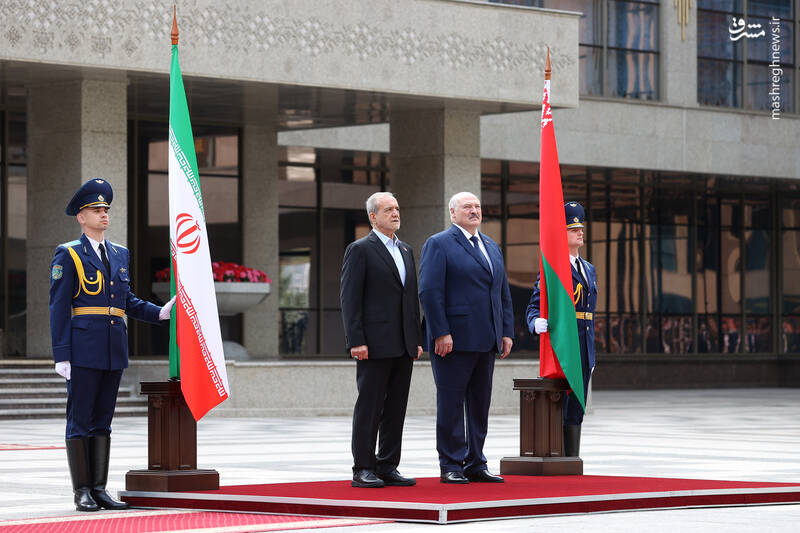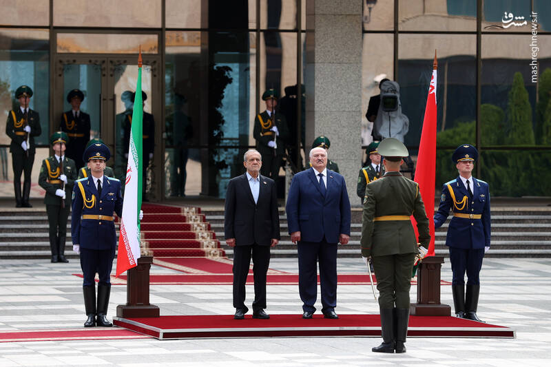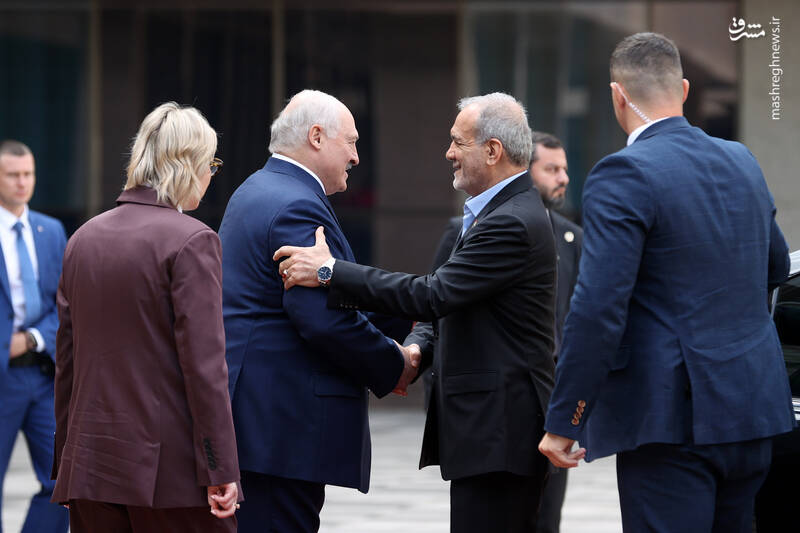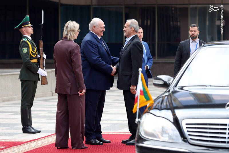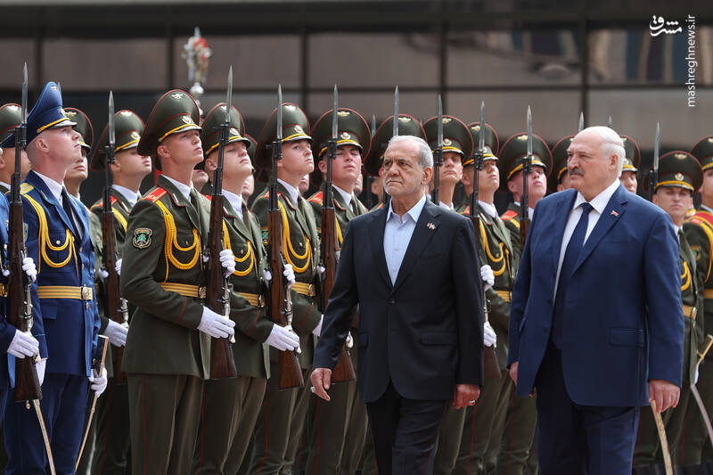 mshrgh.ir/1742257 کد خبر 1742257 تاریخ انتشار: ۲۹ مرداد ۱۴۰۴ - ۱۱:۵۳ ۵ نظر چاپ عکس و فیلم عکس/ استقبال رسمی لوکاشنکو از پزشکیان «الکساندر لوکاشنکو» رئیسجمهور بلاروس در محل کاخ ریاست جمهوری این کشور از پزشکیان استقبال کرد. رئیسجمهور در صدر هیأت عالی رتبه سیاسی و اقتصادی برای ارتقاء روابط دو جانبه به مینسک سفر کرده است. اخبار مرتبط فیلم/ استقبال رسمی رئیسجمهور بلاروس از پزشکیان فیلم/ لوکاشنکو خطاب به پزشکیان: سلام من را خدمت رهبر انقلاب برسانید فیلم/ ادای احترام پزشکیان در بنای یادبود کشتهشدگان جنگ میهنی بلاروس فیلم/ امضای ۱۲ سند همکاری میان ایران و بلاروس عکس/ ادای احترام پزشکیان به بنای یادبود سرباز وطن در بلاروس عکس/ امضای بیانیه مشترک و اسناد همکاری میان ایران و بلاروس امضای ۱۲ سند همکاری و ۱ بیانیه مشترک میان تهران و مینسک فیلم/ کتابخانه ملی بلاروس به رنگ پرچم ایران درآمد فیلم/ دیدار روسای جمهور ایران و بلاروس عکس/ سفر رئیس جمهور به بلاروس فیلم/ پزشکیان: برای گسترش روابط با بلاروس هیچ محدودیتی نداریم عکس/ دیدار دوجانبه رئیس جمهور بلاروس و پزشکیان فیلم/ مذاکرات مشترک هیأتهای عالیرتبه ایران و بلاروس عکس/ استقبال از رئیس جمهور در فرودگاه بلاروس عکس/ نشست هیئتهای عالیرتبه ایران و بلاروس عکس/ دیدار رؤسایجمهور ایران و ارمنستان عکس/ دیدار وزرای خارجه ایران و ارمنستان در ایروان فیلم/ آنچه در سفر رئیس جمهور به بلاروس گذشت پزشکیان: مذاکرات و توافقات خوبی با بلاروس داشتیم برچسبها پزشکیان رئیس جمهور دولت چهاردهم سفر رئیس جمهور ایران بلاروس استقبال رسمی الکساندر لوکاشنکو رئیس جمهور بلاروس