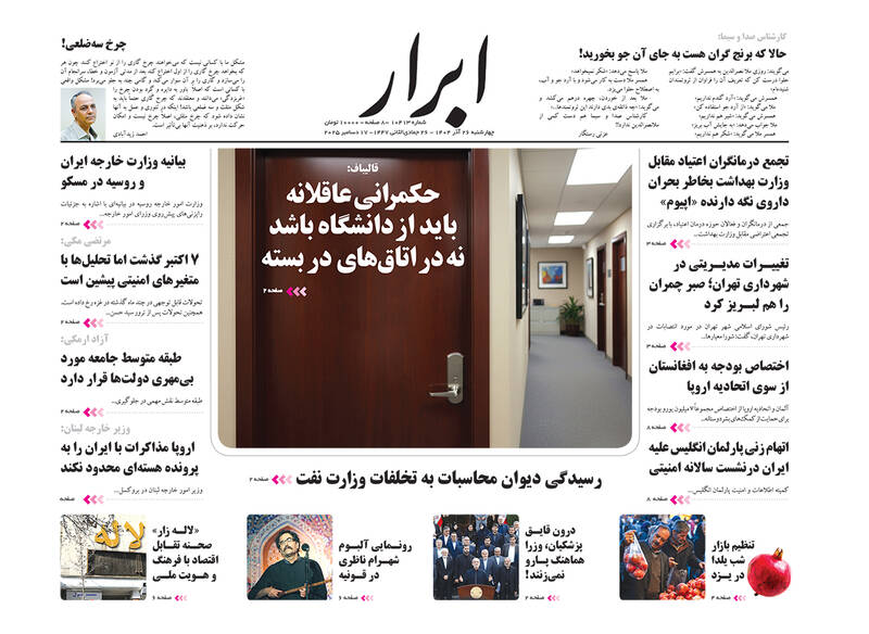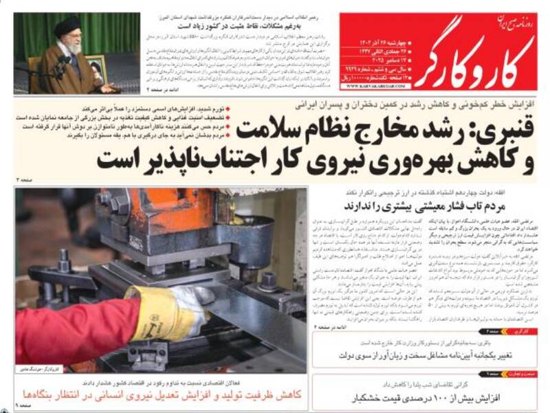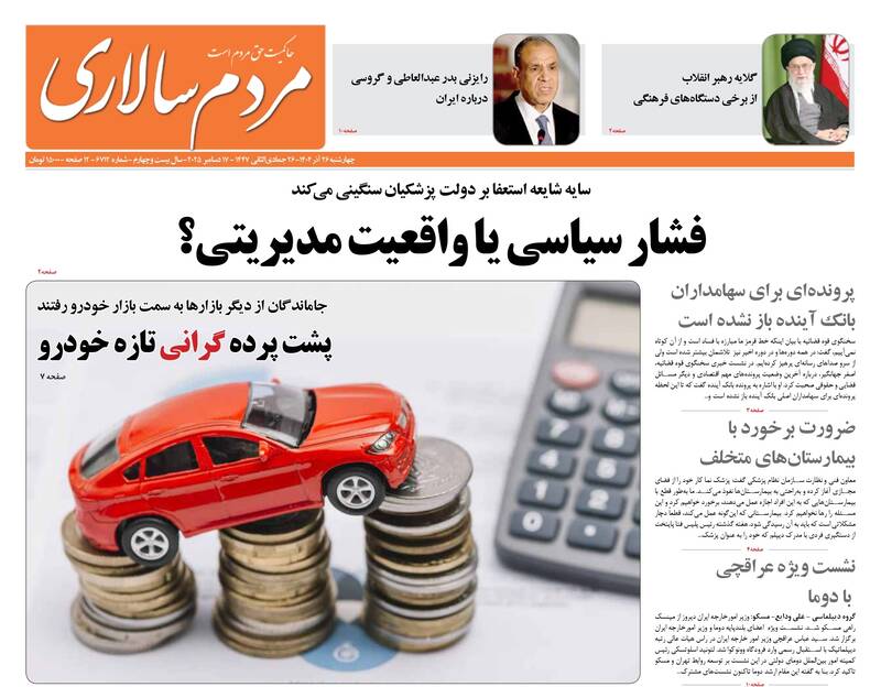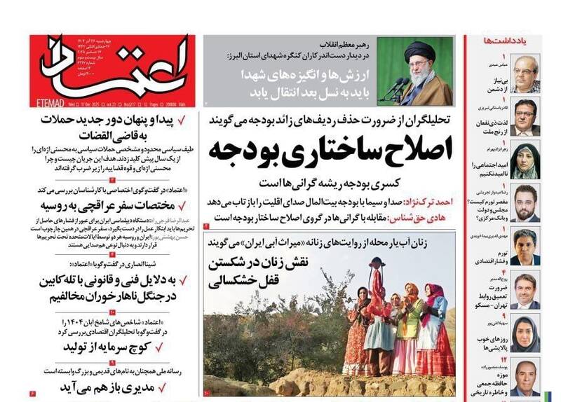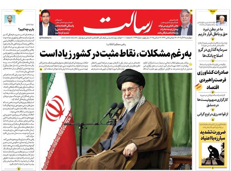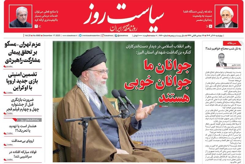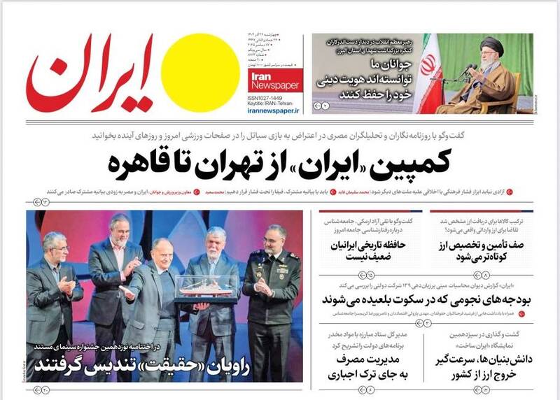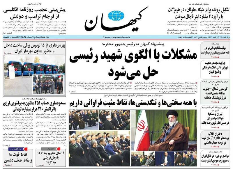 مشکلات با الگوی شهید رئیسی حل میشود، پروزه باندی، گلایه رهبری از دستگاههای فرهنگی، دروغ بزرگ آزادی بیان، ارابههای فرسوده و...از جمله تیترهای روزنامههای چهارشنبه ۲۶ آذر هستند.