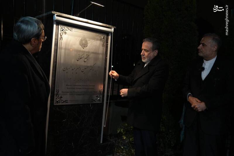 به گزارش مشرق، سید عباس عراقچی که با هدف رایزنیهای دوجانبه با مقامات روسیه به مسکو سفر کرده، با رونمایی از نماد یادبود با عنوان «سردار دیپلماسی انقلابی شهید امیرعبداللهیان» در ورودی سالن تشریفات اقامتگاه سفارت کشورمان، یاد و خاطرۀ وزیر خارجۀ شهید ایران را گرامی داشت.