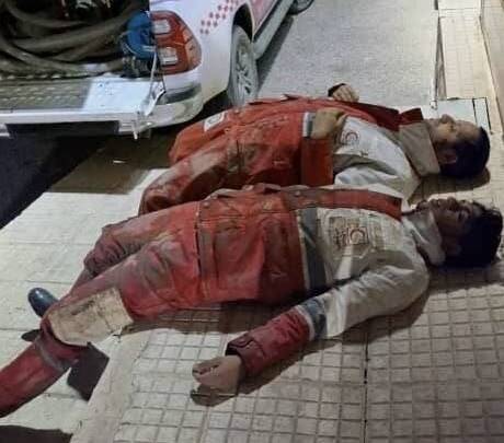 خستگی امدادگران پس از ۱۰ ساعت عملیات بدون وقفه، در جریان امدادرسانی به مناطق سیلزده کرمان.