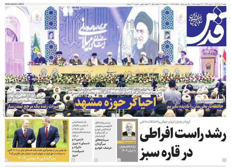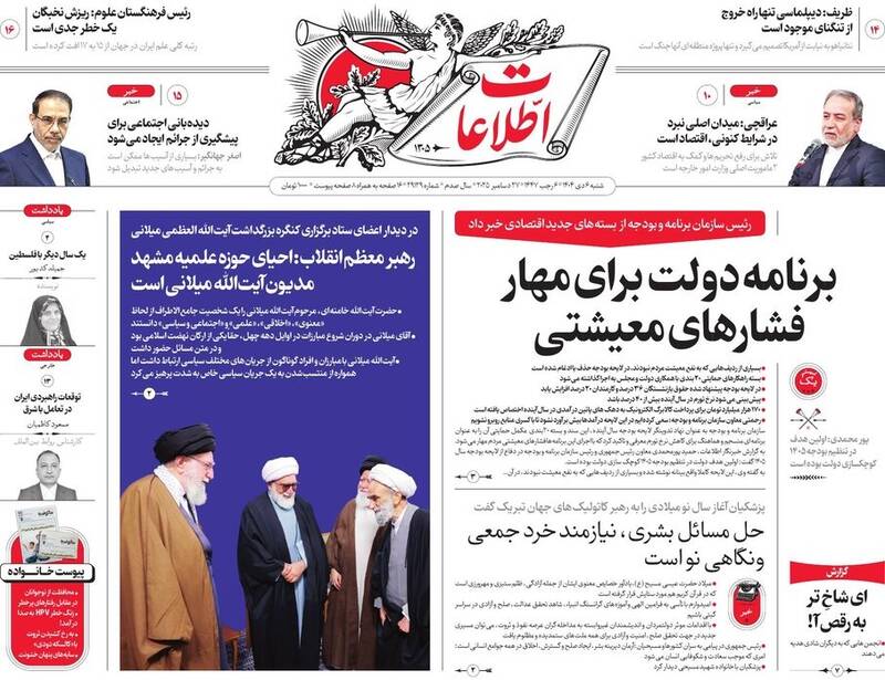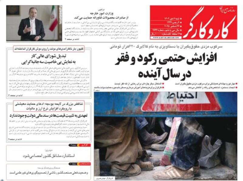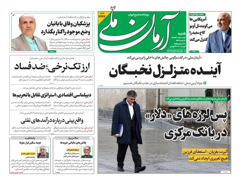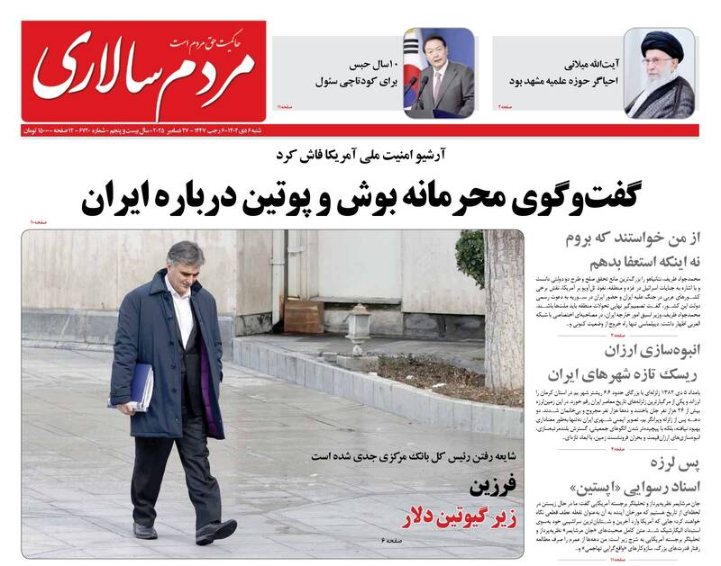 عراقچی: فعالان اقتصادی می‌گویند مشکل ما داخلی است نه تحریم، سیاهه سقوط، خطر سقوط حداقل بگیرها، نیمه مخوف پوتین، تجلیل از احیاگر حوزه مشهد و...از جمله تیترهای روزنامه‌های ‌شنبه ۶ دی هستند.