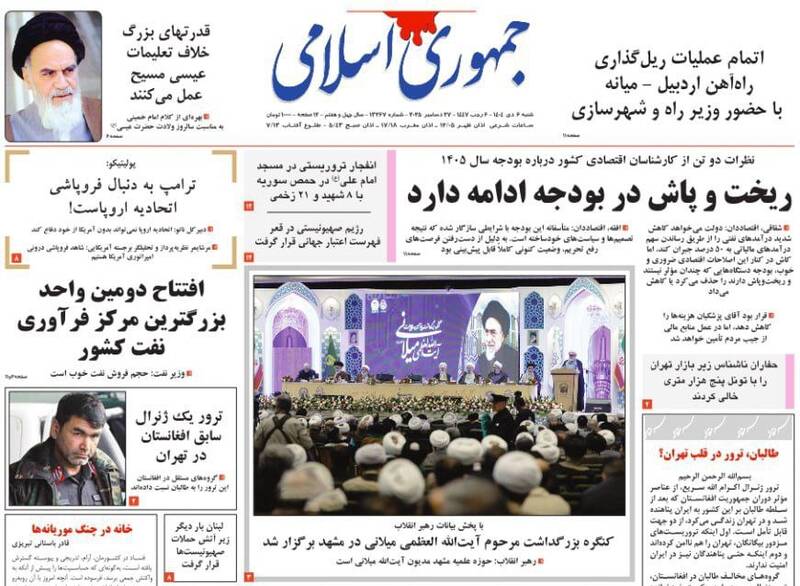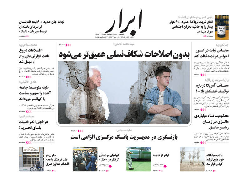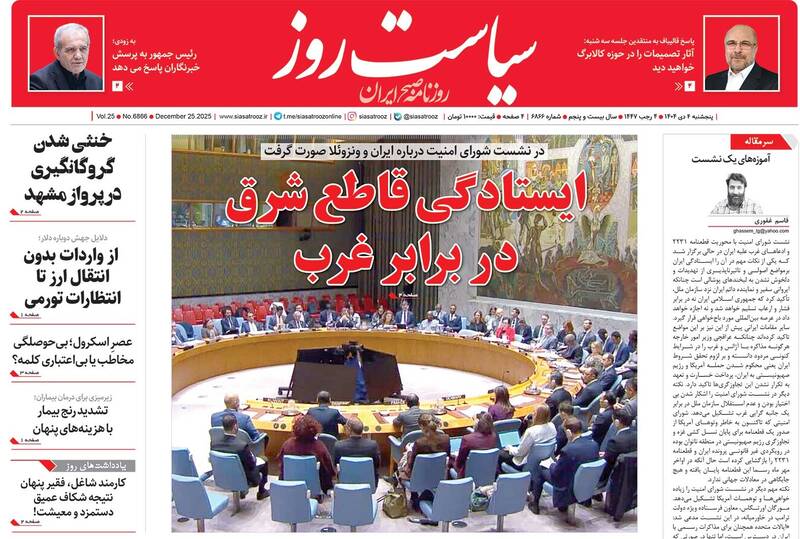 صفحه نخست روزنامه‌های‌ ‌شنبه ۶ دی ۱۴۰۴