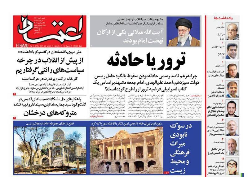 وقتی روزنامه اعتماد که حضرتی مدیر مسئول آنست سعی دارد که اسرائیل را از این جنایت تبرئه کند نشان می دهد که اصلاح طلبان که دشمن درجه یک شهید رئیسی بودند یا اطلاع داشتند یا دارند با دمشان گردو می شکنند همه مردم بر این اعتقادند که این حادثه نبوده بلکه ترور مرموز بدست نوکران صهیونیستها در منطقه بوده است اما فعلا سندی بدست نیامده است باور کنید تاریخ مسببین آنرا رسوا خواهد کرد. دستهای کثیف سیاست بازان همیشه به خون مومنین آلوده بوده است