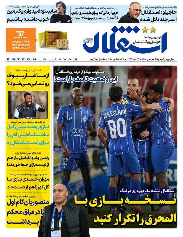 mshrgh.ir/1774721 کد خبر 1774721 تاریخ انتشار: ۷ دی ۱۴۰۴ - ۰۷:۲۸ ۰ نظر چاپ ورزش عکس/ تیتر روزنامههای ورزشی ۷ دی ۱۴۰۴ برچسبها مطبوعات ورزشی روزنامه های ورزشی استقلال پرسپولیس سپاهان تراکتور