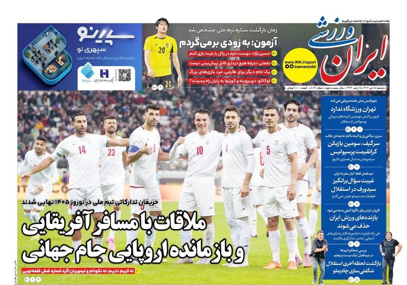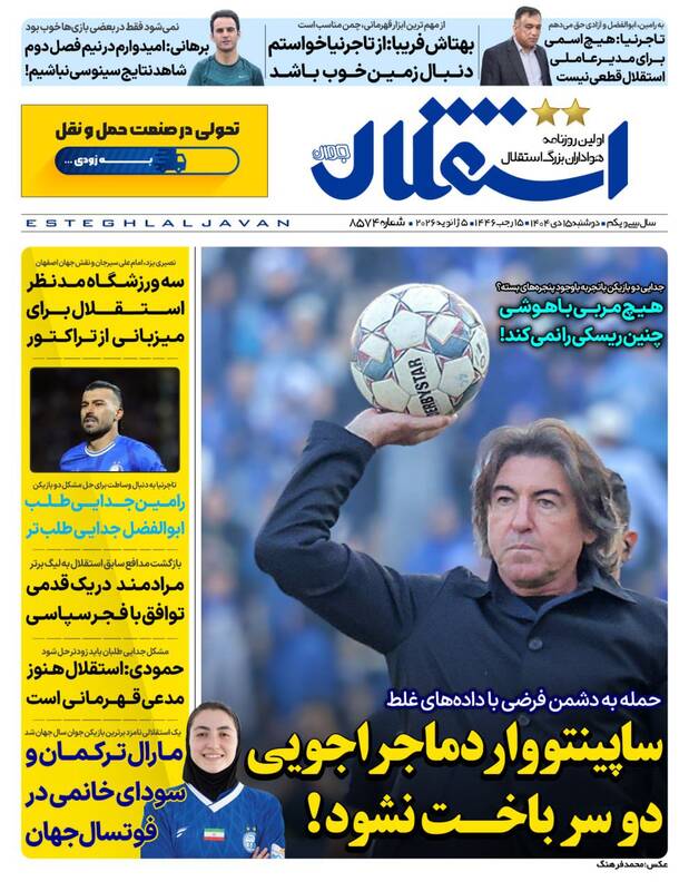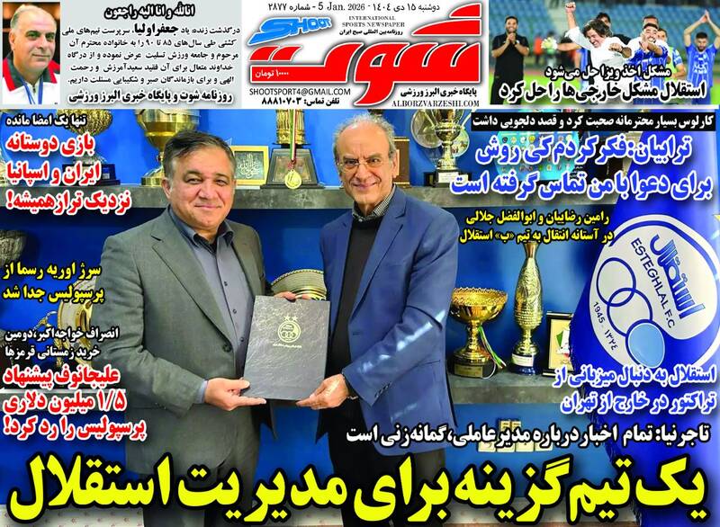 mshrgh.ir/1776524 کد خبر 1776524 تاریخ انتشار: ۱۵ دی ۱۴۰۴ - ۰۷:۳۶ ۰ نظر چاپ ورزش عکس/ تیتر روزنامههای ورزشی دوشنبه ۱۵ دی ۱۴۰۴ اخبار مرتبط عکس/ تیتر روزنامههای ورزشی یکشنبه ۱۴ دی ۱۴۰۴ عکس/ تیتر روزنامههای ورزشی پنجشنبه ۱۱ دی ۱۴۰۴ برچسبها روزنامه های کشور روزنامه های ورزشی مطبوعات ورزشی