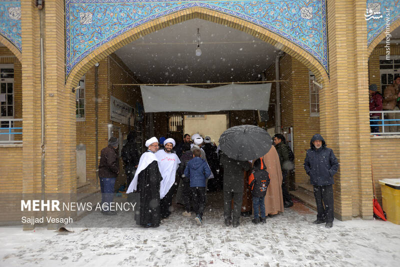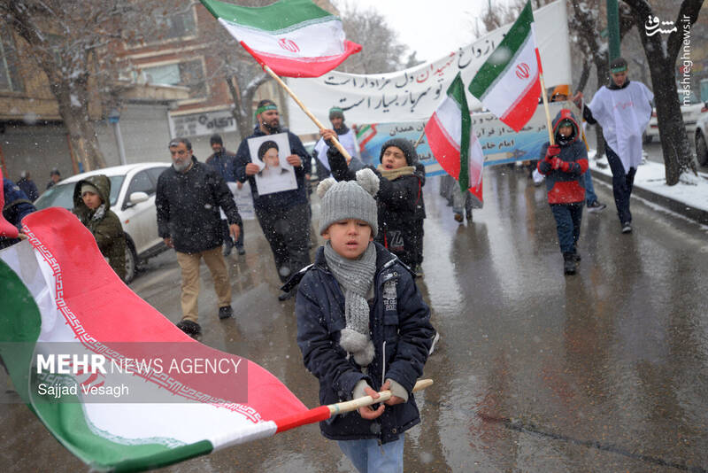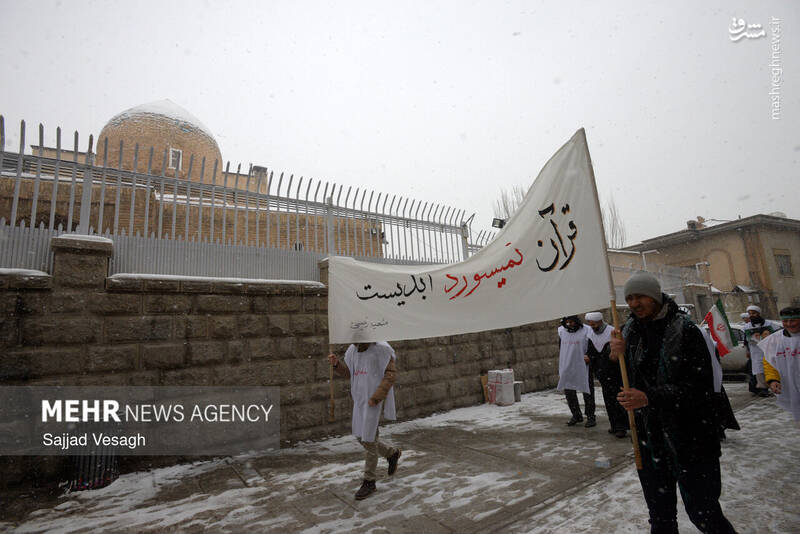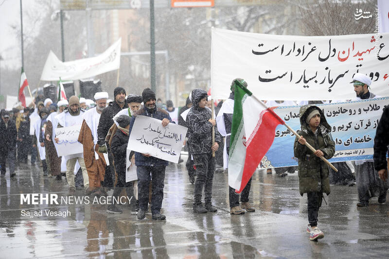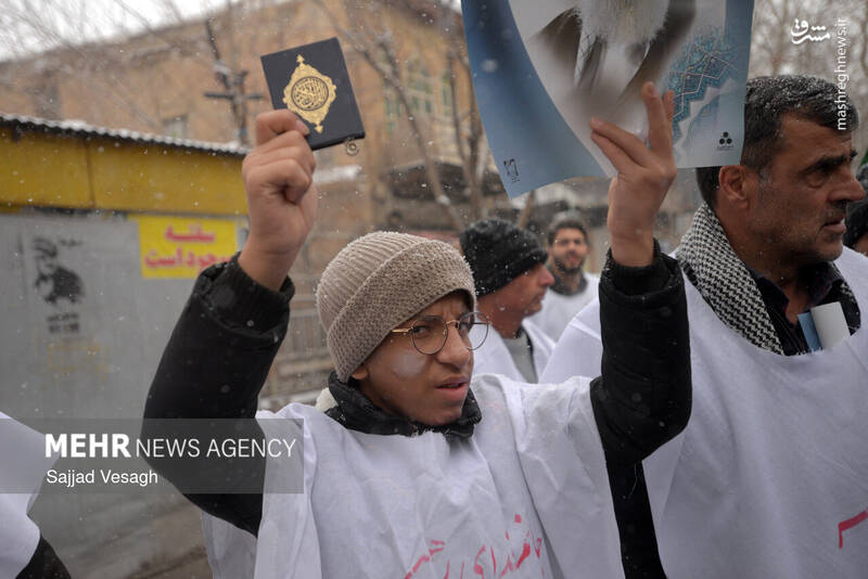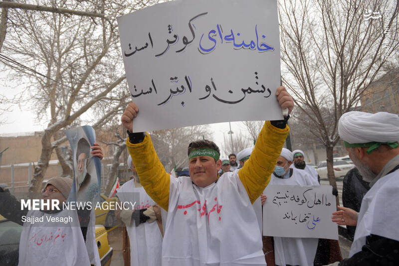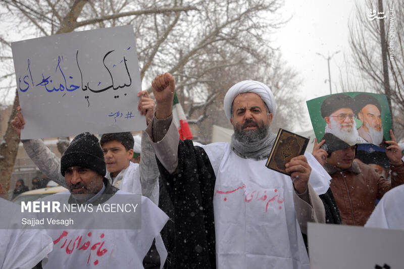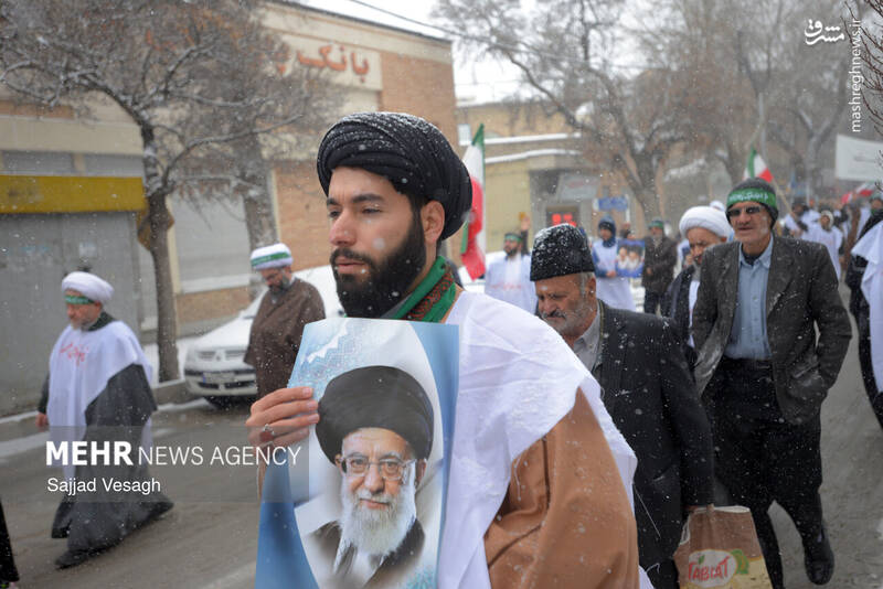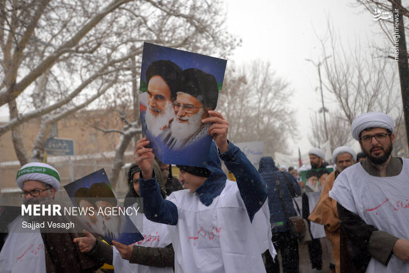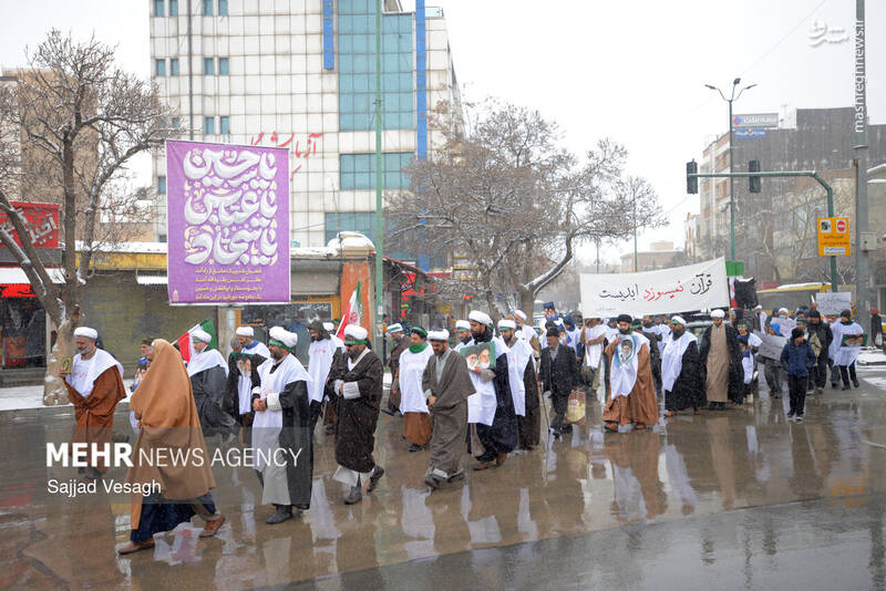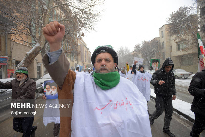 راهپیمایی اعتراضی طلاب و روحانیون همدان در هوای برفی