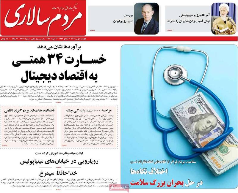 فتنه کمانه کرد؛ آشوب سراسر آمریکا را فرا گرفت، میچکد از چنگ تو، قاتل و وحشی، زمین گرده، صدای تحریم جام جهانی آمریکایی و...از جمله تیترهای روزنامههای دوشنبه ۶ بهمن ۱۴۰۴ هستند.