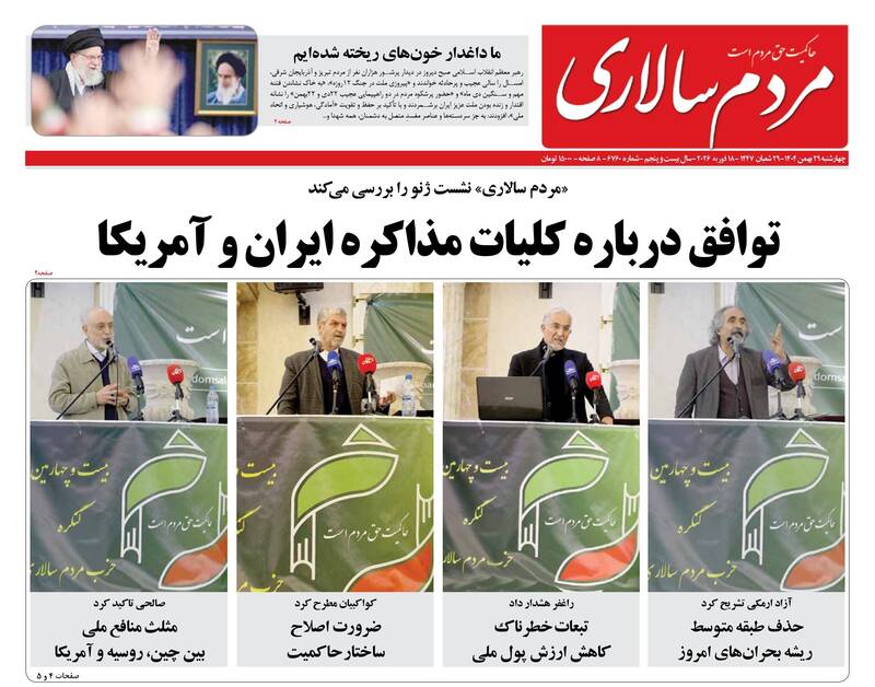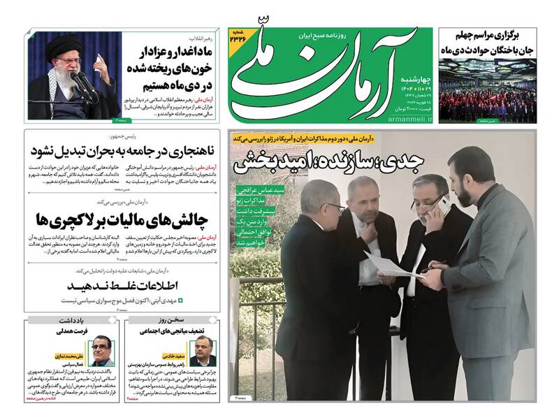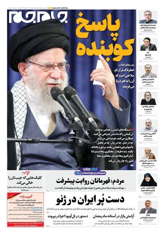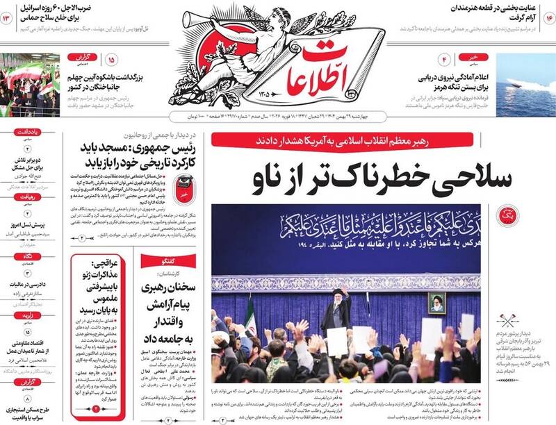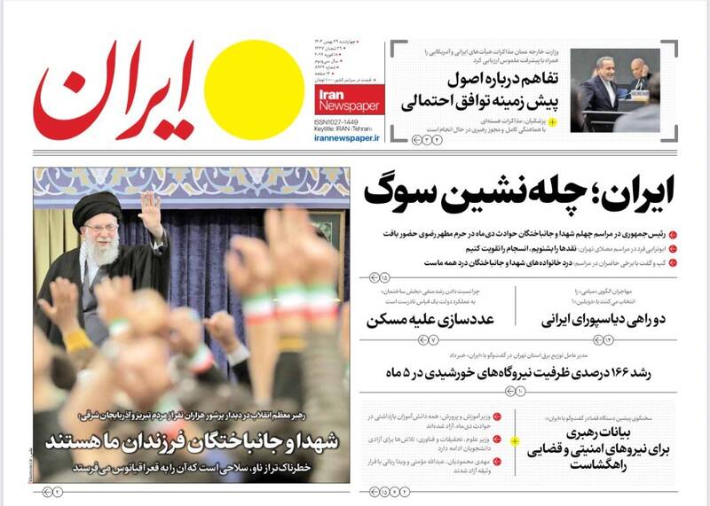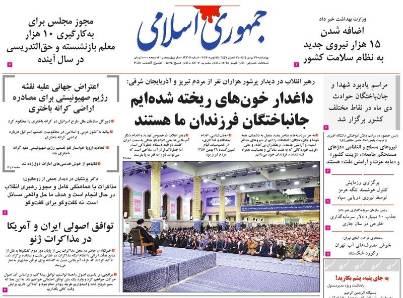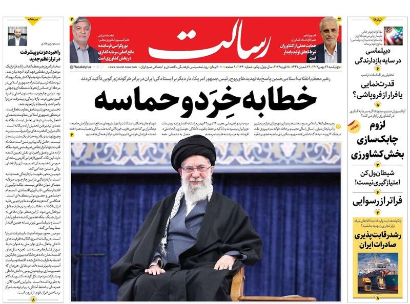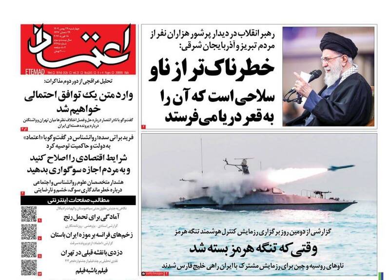 خطرناک‌تر از ناو آمریکا سلاحی است که آن را به قعر دریا می‌فرستد، داغدار همه فرزندانمان هستیم، پاسخ کوبنده، خطابه خرد و حماسه و...از جمله تیترهای روزنامه‌های چهارشنبه ۲۹ بهمن ۱۴۰۴ هستند.
