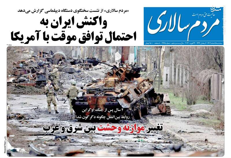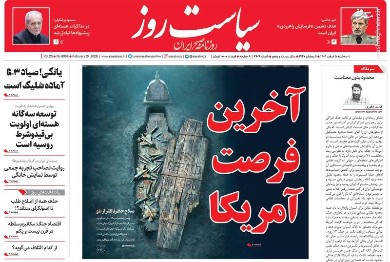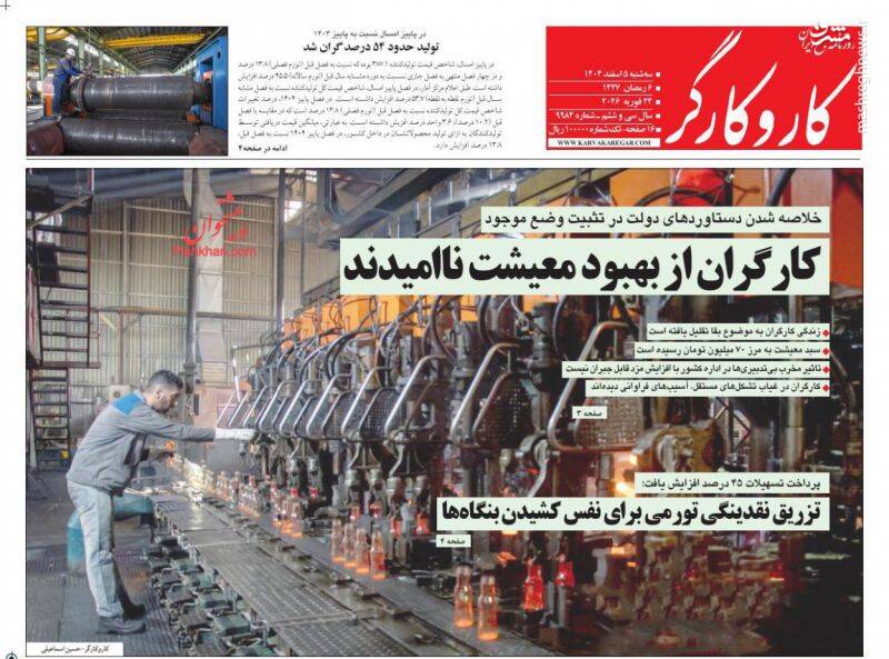 صفحه نخست روزنامه‌های‌ سه‌شنبه ۵ اسفند ۱۴۰۴