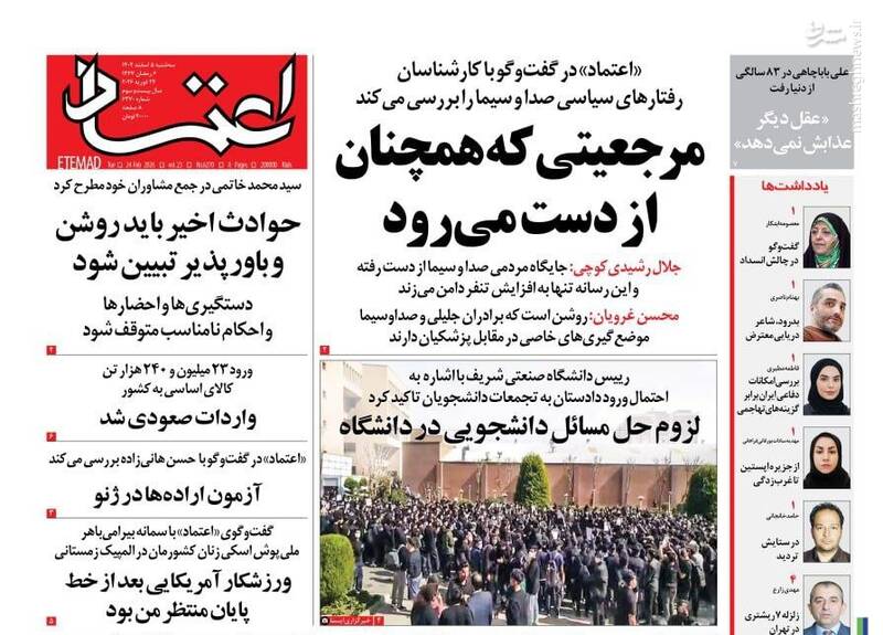 چقدر این دو روزنامه اعتماد و سازندگی حقیرند که بدو بدو در پاسخ خبر ۲۰:۳۰ جوابیه وسفید شویی اروپای ها تیتر کردن...