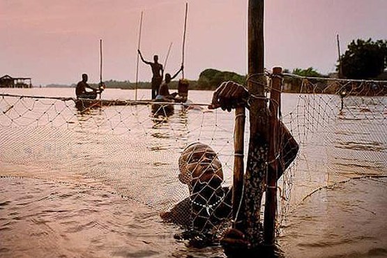 یک ماهیگیر در حال مرمت تورش در ساحل بنین، عکاس اریک مرتن.